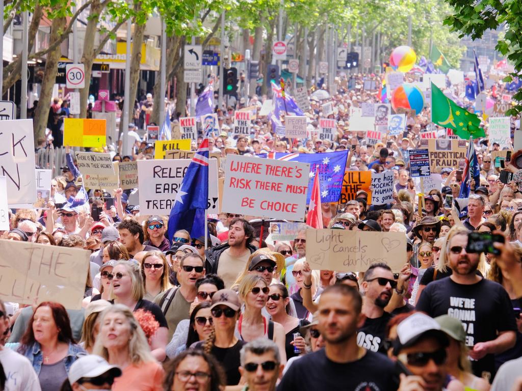 Above: Melbourne residents march against the permanent “pandemic” powers, raising the slogan “Kill the Bill”. Image from http://www.couriermail.com.au