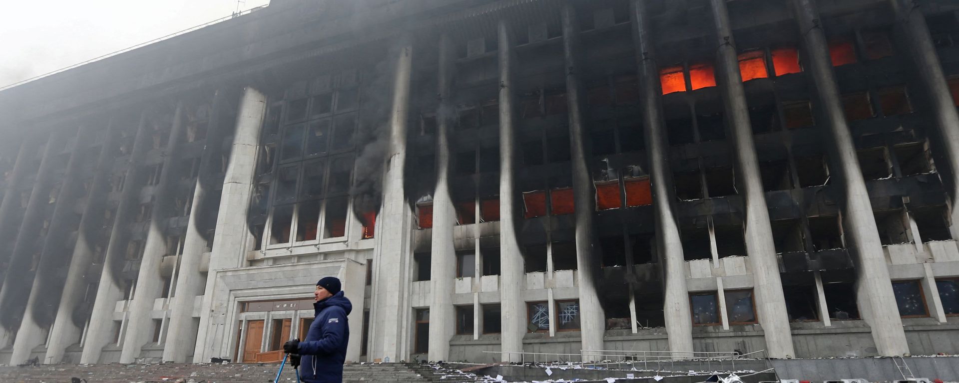 Above: The Mayor’s Office Building in Almaty was torched by rioters in early January. http://www.thetexaschronicle.com